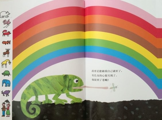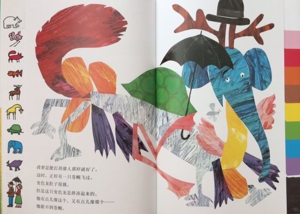 著名美国作家艾瑞克•卡尔的另一佳作。变色龙虽能自由变换身上的颜色,但还是觉得生活无趣。有一天,它来到了动物园,竟意外发现自己的外形也能够变得像其它动物一样。它会因此感到快乐吗?这是一个让孩子了解和肯定自己的优质绘本。画面优美、色彩丰富、故事生动,耐人寻味。适合3岁以上的儿童。