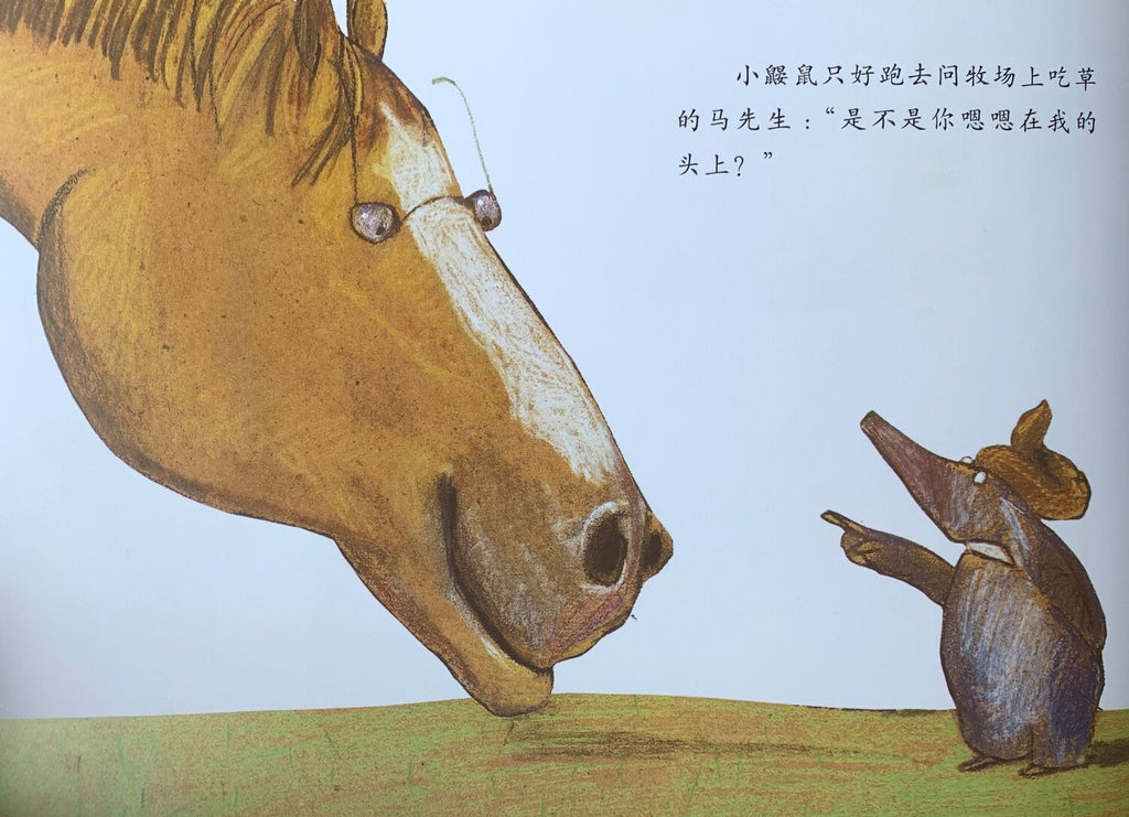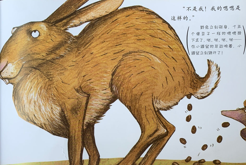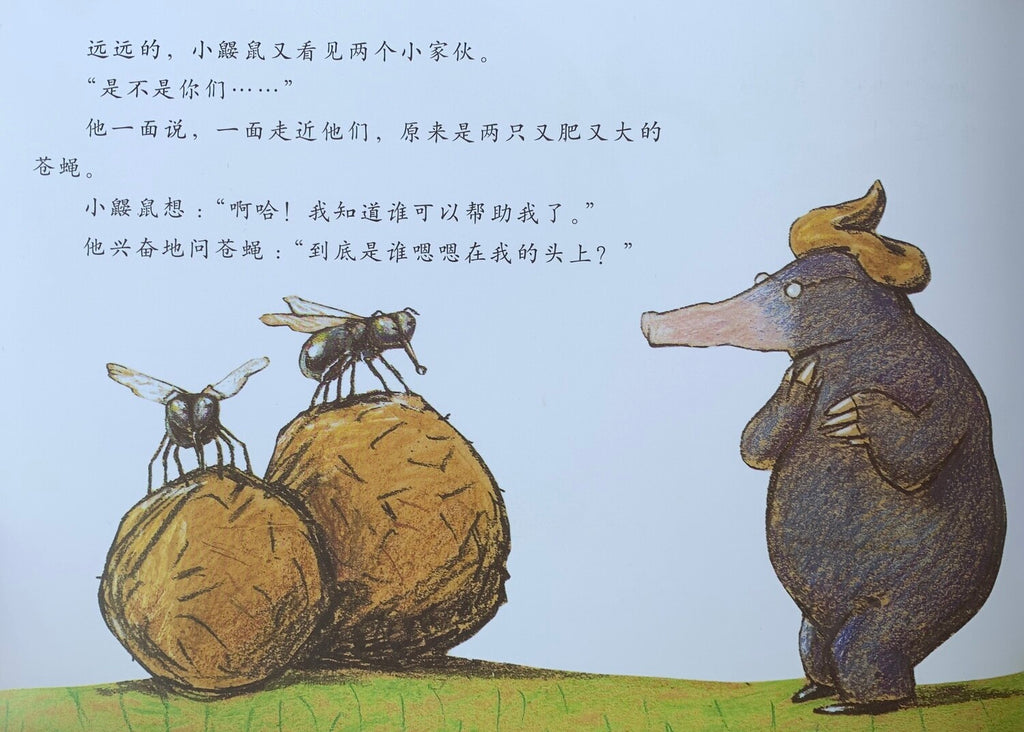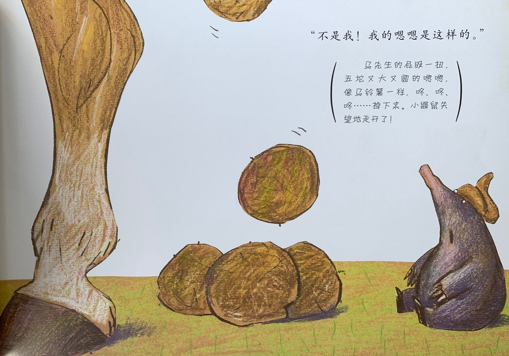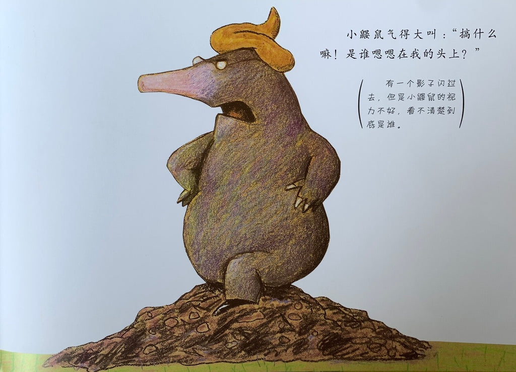 The Chinese edition of a popular German picture book about a mole who was determined to find the culprit who pooped on his head one morning. Little ones who appreciate toilet humour will be squealing in delight as they watch Mole confront various animals and match the poop on his head with theirs. How would the mystery be solved? An unexpected ending awaits!
